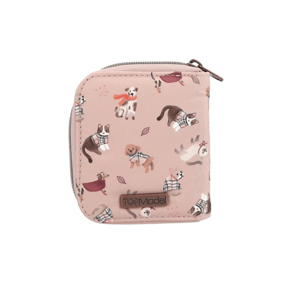 Hou al je kleingeld, briefjes en pasjes netjes bij elkaar met deze schattige portemonnee in poederroze en koper. Voorzijde met een lief motief van hondjes en een katje, achterzijde met een all‑over print van kleine hondjes en katten — zo draag je jouw diervriendschap altijd bij je. Dankzij het geritselde muntenvak, een apart compartiment voor biljetten en meerdere kaartvakken heb je alles overzichtelijk opgeborgen.