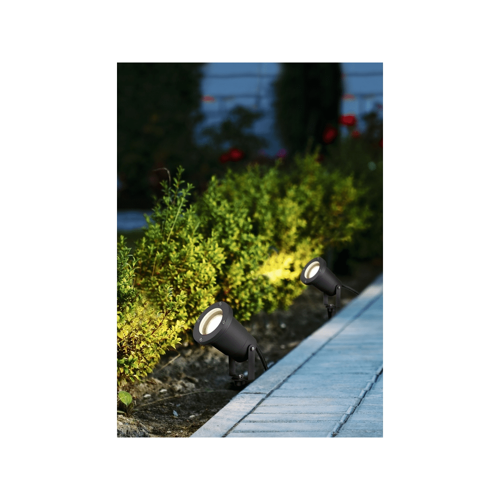 De lamp is geschikt voor 1x GU10 lamp (max. 10W), waardoor je zelf de lichtbron kunt kiezen. Dankzij de meegeleverde grondspies en vijf meter lange voedingskabel plaats je de lamp eenvoudig op de gewenste plek. Het compacte ontwerp van ca. 9 cm diameter is ideaal voor diverse buitenomgevingen.