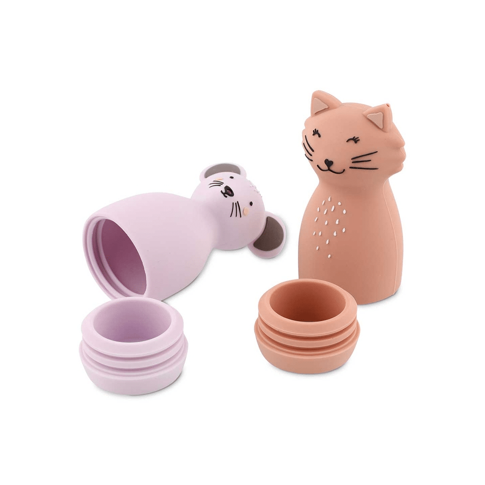 Ontdek het schattige Trixie badspeelgoed sproeiende dieren Mrs Cat en Mrs Mouse voor eindeloos waterplezier. Deze zachte badvriendjes in 100% siliconen stimuleren de zintuigen en zijn ideaal als badspeelgoed en bijtspeeltje.Waarom zijn deze sproeiende dieren perfect voor jouw baby.