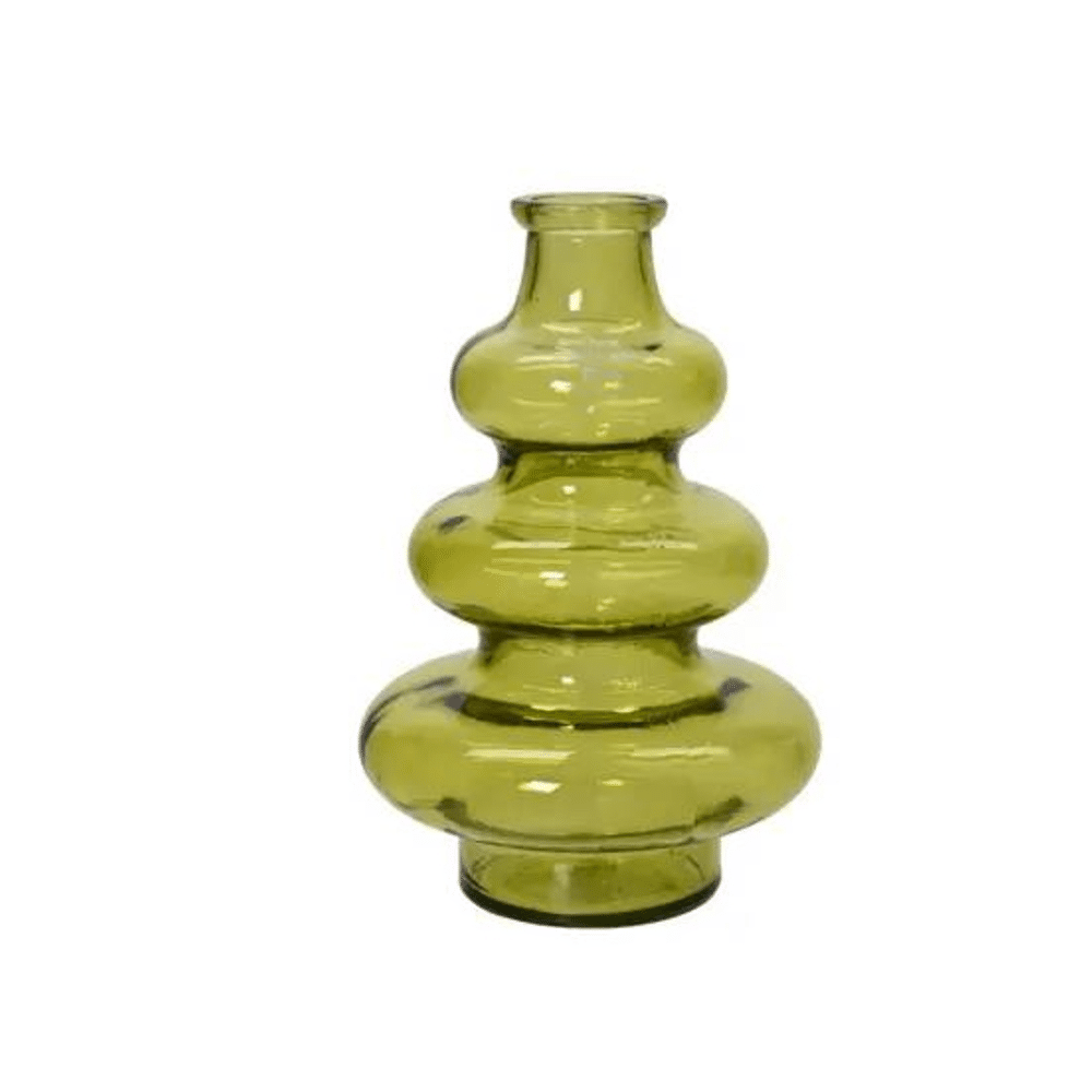 Deze vaas van gerecycled glas combineert stijl, duurzaamheid en veelzijdigheid. Een compact en elegant accent dat je interieur direct verfrist en karakter geeft.