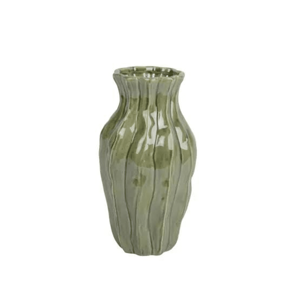 Deze groene porseleinen vaas combineert stijl, stevigheid en functionaliteit. Een elegant decoratief item dat bloemen en interieur prachtig complimenteert.