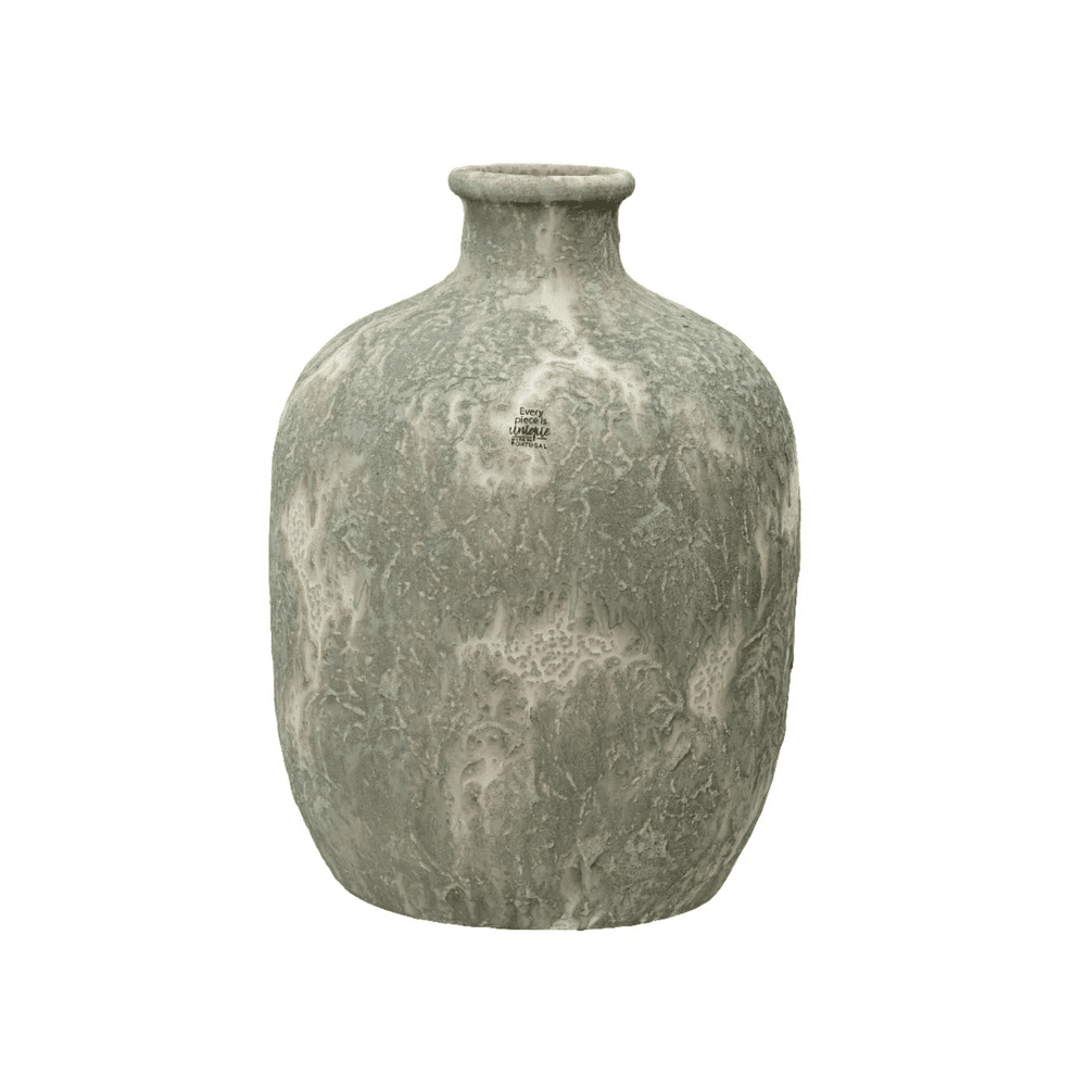 Een echte eyecatcher in jouw interieur! Deze hoge terracotta vaas in een warme groentint combineert natuurlijk karakter met moderne flair. Perfect voor hoge takken of als solostuk op de vloer.