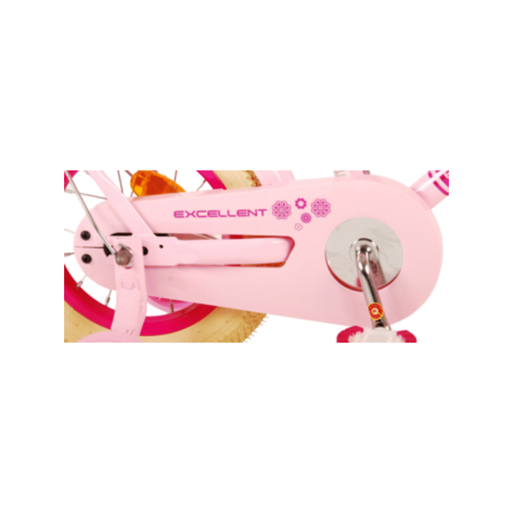 De Volare 12" Excellent roze kinderfiets biedt je kindje een veilige, speelse en kleurrijke start op twee wielen!