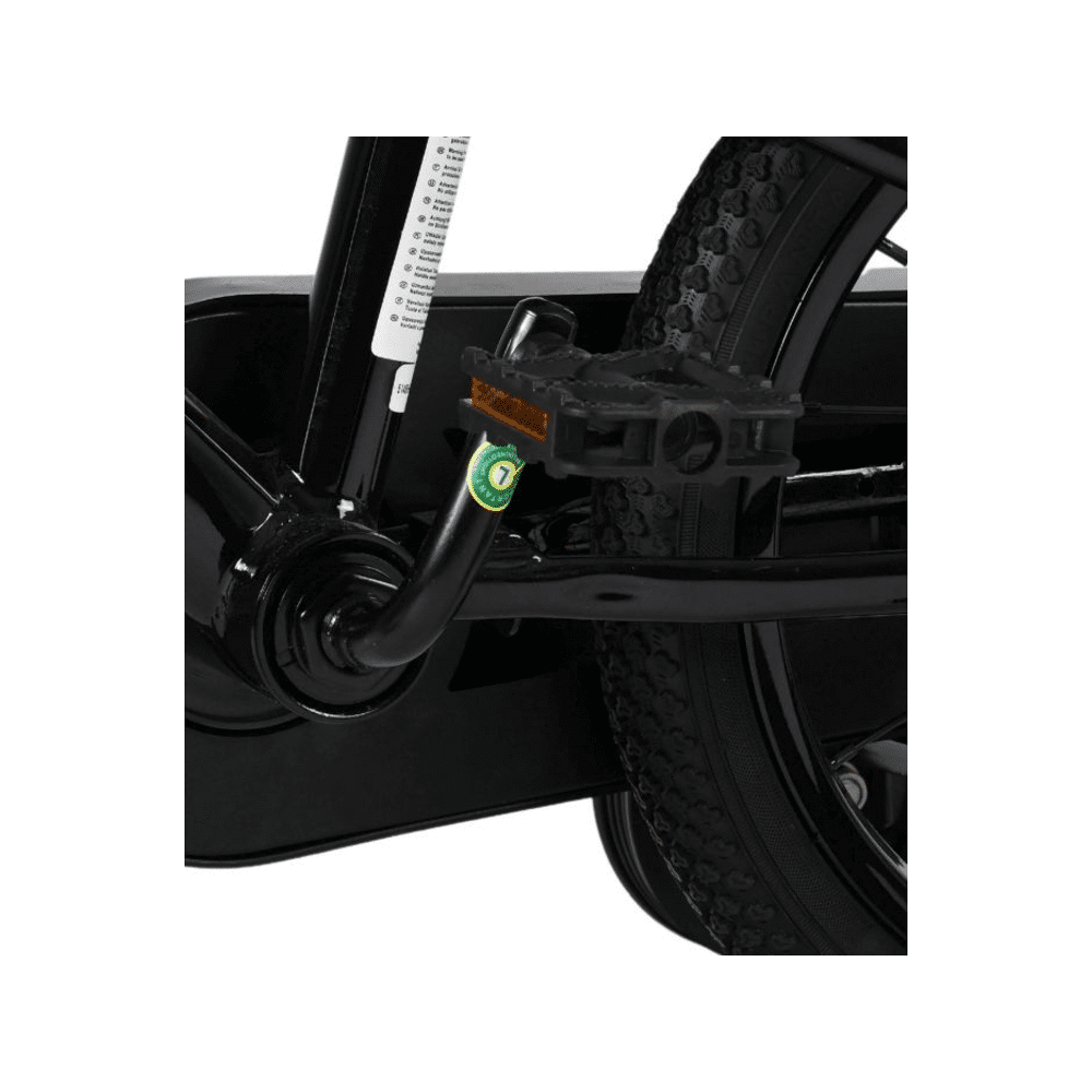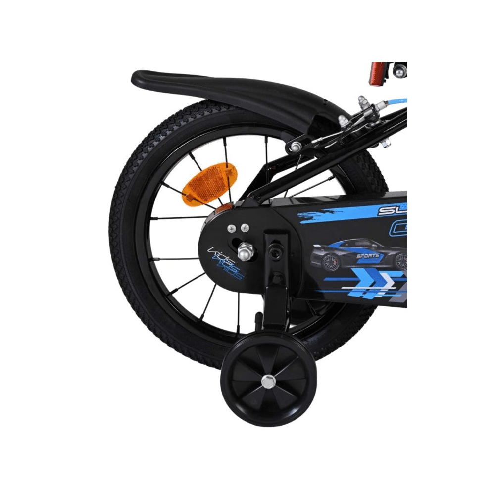De fiets heeft een sterk frame, veilige remmen en zijwieltjes voor extra stabiliteit. Ideaal om vlot en zelfverzekerd te leren fietsen.- Stevig stalen frame
