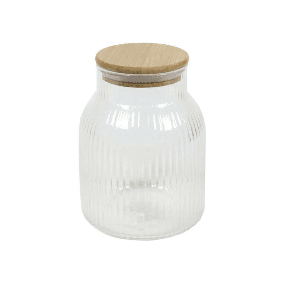 Bewaar je pasta, noten of snoepjes in stijl met deze glazen voorraadpot met bamboe deksel. Het verticale lijnenpatroon geeft een moderne touch aan je keuken én je voorraadkast. Praktisch, luchtdicht en een echte eyecatcher!Waarom jij deze pot in huis wil