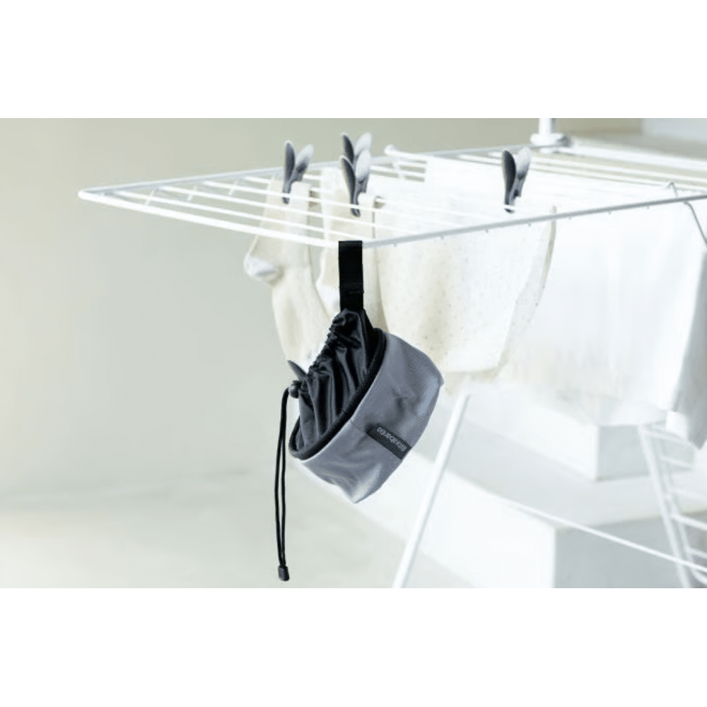 Open de tas en pak je wasknijpers er direct uit.Hang de tas aan je waslijn of bewaar hem compact bij je wasmand.