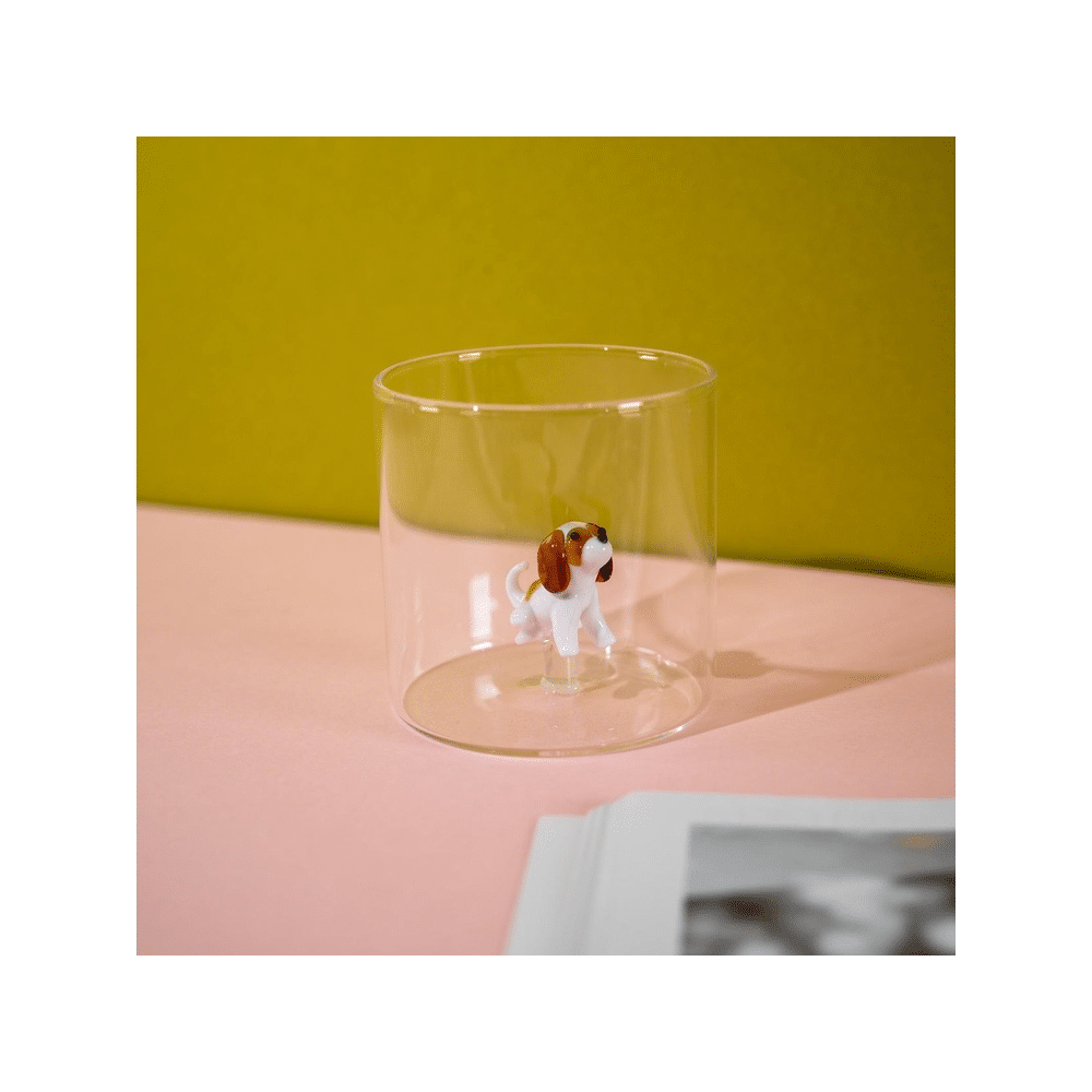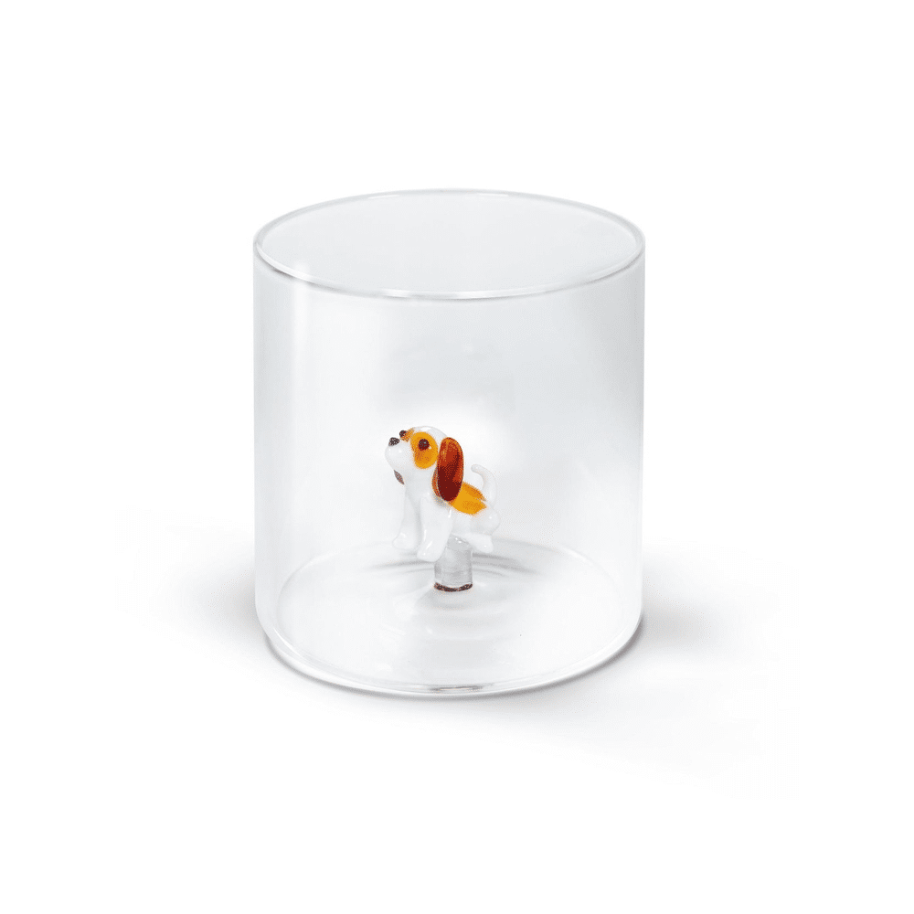 Een charmant en stijlvol glas met Cavalier King decoratie, perfect om je tafel een vrolijk en elegant accent te geven.