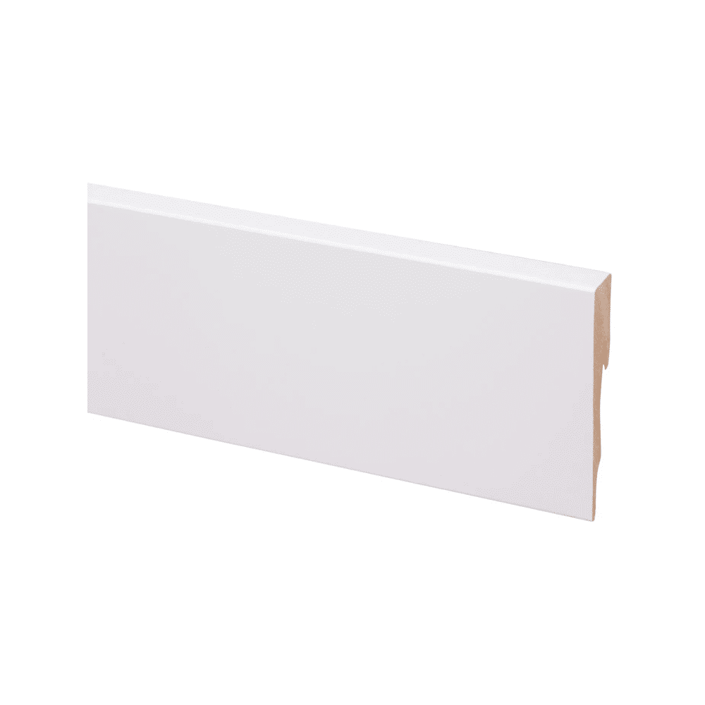 Deze witte muurplint van 80x12 mm en 240 cm biedt een praktische en stijlvolle oplossing om muren en vloeren netjes af te werken met een moderne uitstraling.