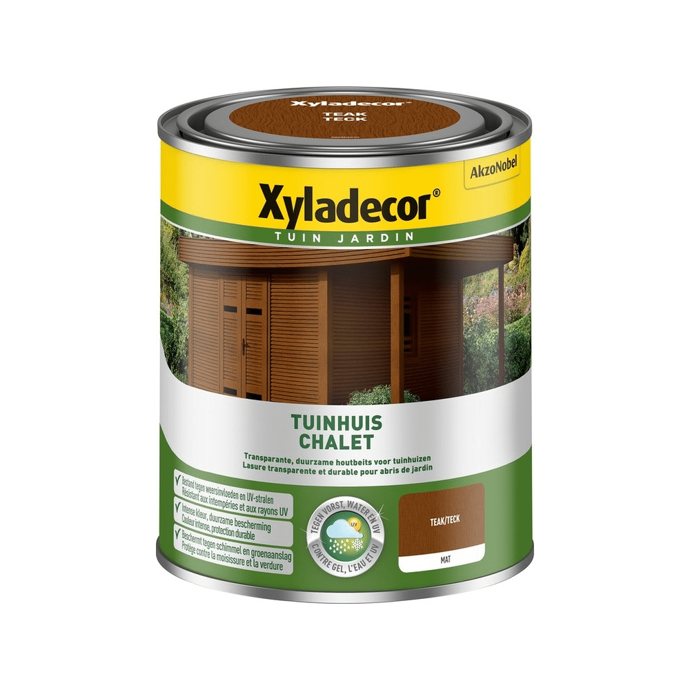 Breng je houten tuinhuis in topvorm met Xyladecor Tuinhuis Teak 750ml.Deze waterbestendige beits zorgt voor een natuurlijke, warme teaklook.